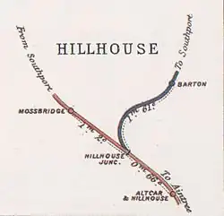 It connected the West Lancashire Railway's lines to the north of Southport to the CLC Southport & Cheshire Lines Extension Railway at Altcar and Hillhouse railway station. Known also as the Barton branch, it ran from 1 September 1887 to 21 January 1952. The Barton branch was notable for the "Altcar Bob" service, introduced in July 1906.