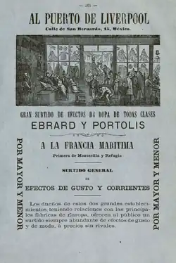 Liverpool, first called The Cloth Case, was founded in 1847 by Jean-Baptiste Ebrard,[2] a Frenchman who first started selling clothes in cases in Downtown Mexico City. In 1872, he started importing merchandise from Europe . Much of the merchandise was shipped via Liverpool, England, prompting Ebrard to adopt the name Liverpool for his store, in 1862 he opened its second store and since then it has continued growing .
