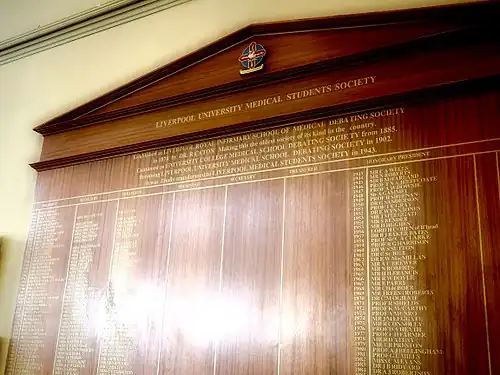 - ^ "Archive of the University of Liverpool: Guild of Students, Student Societies and Student Life: Student Societies: Records of Individual Societies/Clubs: Medical Students' Society". University of Liverpool. Retrieved 5 November 2016.