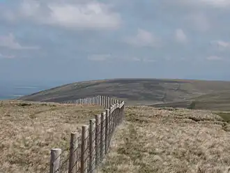 The north east ridge has Heltondale Beck to the south, a feeder of the Lowther. Beyond this an east ridge descends from Loadpot Hill between Heltondale and Cawdale, both of which are deeply cut. This ridge has a subsidiary top, The Pen, which bears a beacon (columnar cairn). The Lowther valley and the Askham-Bampton road form the eastern boundary of the fell.