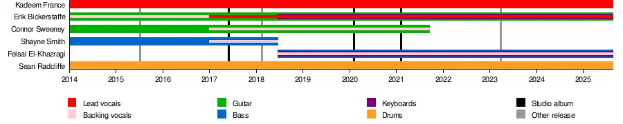 - Erik Bickerstaffe – guitar, backing vocals (2014–present), lead vocals (2017–present), keyboards (2018–present)