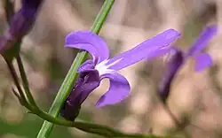 Lobelia dentata is a herb found in eastern Australia. The habitat is eucalyptus woodland and forest, often on sandy soils. It is an uncommon species, but may be locally abundant after bushfires.