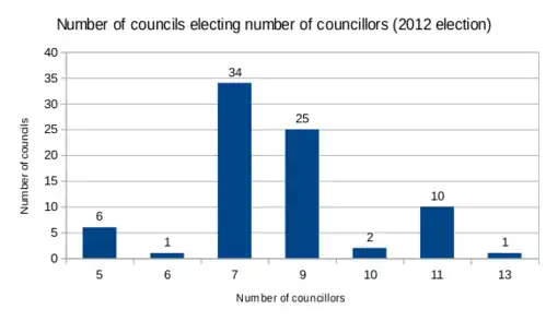 Council elections are held every four years on the fourth Saturday in October.[3] The last council elections were held on 26 October 2024.[4] An election was not held for the Moira Shire Council, which was dismissed by an Act of Parliament in March 2023.[5] In 2016, 637 local Councillors were elected in the 78 Councils contested.[6] Casual vacancies of councillors are filled by countback of the last ballots,[7] except for the position of Lord Mayor of Melbourne, which is filled by a by-election.