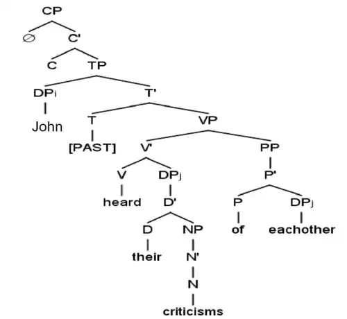 b. *[DP They]i heard John's criticisms of [DP each other]i.[1]: 167
