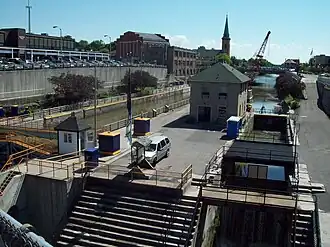 Lockport Industrial District is a national historic district located at Lockport in Niagara County, New York. The district features the two sets of Erie Canal locks constructed in 1859 and 1909–1918, respectively known as the Northern Tier and Southern Tier. Also in the district are the remains of industrial buildings built along the related hydraulic raceway along the north side of the canal.[2]