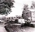 Lock 27 is a curious combination of the two specifications, having the culverts inside the masonry, but the upper gate below the breast wall. This is because of multiple contractors working on the lock after a lapse of time.[27]