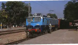 In 1925, the first electric train ran between Bombay and Kurla, hauled by a imported SLM locomotive on a DC traction.[21] In 1927, the first electric locomotive hauled passenger train was pulled by an imported WCP-1.[8] In 1957, Indian Railways adopted 25 kV 50 Hz AC traction with the first runs beginning in December 1959 with the WAM-1 locomotives.[21]