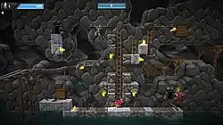 The player controls a stick figure who must collect all the gold in a level while avoiding guards who try to catch the player. After collecting all the gold, the player must reach the top of the screen to reach the next level. There are 150 levels in the game, which progressively challenge players' problem-solving abilities or reaction times.[9]
