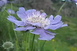 Lomelosia caucasica, the Caucasian pincushion flower,[2] pincushion-flower[3] or Caucasian scabious, is a species of flowering plant in the family Caprifoliaceae, native to the Caucasus, north eastern Turkey, and northern Iran. Growing to 60 cm (24 in) tall and broad, it is a clump-forming perennial with grey-green, divided leaves. Pincushion-shaped buds, borne on erect hairy, stems, open to pale blue or lavender flower heads, 4–8 cm (2–3 in) in diameter, from late summer through to autumn.[4]
