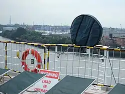 A long-range acoustic device (LRAD), acoustic hailing device (AHD) or sound cannon is a specialized loudspeaker that produces sound at high power for communicating at a distance. It has been used as a method of crowd control, which has caused permanent hearing damage, having an extremely high decibel capacity (up to 160 dB measured at one meter from the device).[1] Other uses have included for negotiations in siege situations; to deal with piracy at sea; for mass notification during natural disasters or other emergencies; and by the military, including several navies.