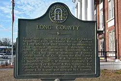 Long County is a county located in the U.S. state of Georgia. The county seat is Ludowici.[1] Long County is part of the Hinesville-Fort Stewart Metropolitan Statistical Area. The constitutional amendment to create the county was proposed August 14, 1920, and ratified November 2, 1920. The county is named after Crawford Long (1815–1878), an American surgeon and pharmacist who was the first to use diethyl ether as an anaesthetic.[2]