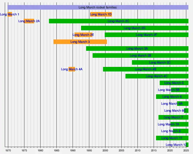 The Long March rockets are a family of expendable launch system rockets operated by the China Aerospace Science and Technology Corporation.[1][2] The rockets are named after the Chinese Red Army's 1934–35 Long March military retreat during the Chinese Civil War.[3]