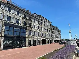 Long Wharf is a historic American pier in Boston, Massachusetts, built between 1710 and 1721. It once extended from State Street nearly a half-mile into Boston Harbor; today, the much-shortened wharf (due to land fill on the city end) functions as a dock for passenger ferries and sightseeing boats.[1]