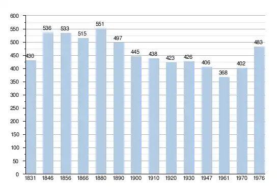 - Bronnen:NIS, Opm:1831 tot en met 1970=volkstellingen, 1976= inwoneraantal op 31 December