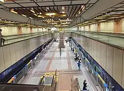 The two-level, underground station structure with an island platform and three exits.[4] The washrooms are located inside the entrance area.