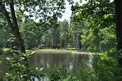 Look Park, consisting of about 150 acres (61 ha), was given to the City of Northampton from Mrs. Fannie Burr Look, wife of Frank Newhall Look. In 1928, she gave the city a farm valued at $60,000 and $450,000 for its development and trust fund for its upkeep.[1] Before his death, Frank Newhall Look had been a resident of Northampton and served as the president of the Florence Manufacturing Company.[1] The park was opened to the public in 1930. Operation and maintenance are dependent upon the trust fund, visitor fees, grants, and gifts. Owned by the city but operated as a non-profit organization, Look Park receives no funding from the city or state.