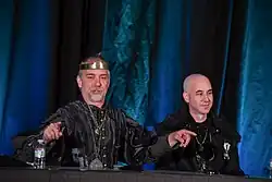 Ultima series creator Richard Garriott acquired the nickname "British" as a teenager from friends at computer camp who claimed his greeting to them, "Hello", was distinct from the usual American "Hi". The Lord title was later added when he played as dungeon master in his Dungeons & Dragons games.[1] When his first published game Akalabeth was released, the president of the publishing company suggested he use the name in the game, since it was more memorable than his real name.[2] Garriott released Akalabeth: World of Doom and all other Ultima games under the pseudonym, and occasionally appeared in Ultima Online playing as Lord British and meting out justice to his players.[3] He is still known as Lord British. Garriott retained the trademark rights to the name Lord British with its associated symbols, and the character appears in his game Tabula Rasa as General British.