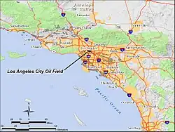 ![]() The Los Angeles City Oil Field in the Los Angeles Basin of southern California. Other oil fields are shown in light gray. | |