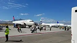 Los Cabos International Airport (Spanish: Aeropuerto Internacional de Los Cabos) (IATA: SJD, ICAO: MMSD) is an international airport located in San José del Cabo, Baja California Sur, Mexico, serving as the main gateway to the Los Cabos region on the southern tip of the Baja California Peninsula. It offers flights to more than 50 destinations across the Americas and Europe, primarily functioning as a major destination for most U.S. and Canadian mainline airlines. The airport is also part of a high-traffic air corridor connecting the Baja California Peninsula with Mainland Mexico.