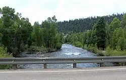 The name Los Pinos is Spanish for "the pines,"[2] and, in fact, the river is known locally as the Pine River.[3]
