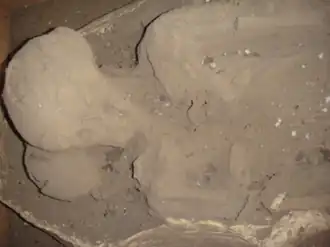 Excavation had reached a depth of approximately 35 to 40 centimeters depth at the time it was abandoned.