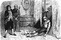 On 27 August 1830, Louis Henri was found dead with a rope around his neck but his feet on the ground; while there were initially suspicions of foul play, with the baroness being implicated, an inquiry was held which formally declared his death to be a suicide. There were rumours that the new King of the French, Louis-Philippe, had collaborated with Sophia in the crime, as they feared that she and Louis Phillippe's son Aumale – the testamentary heirs of Condé – might be disinherited by the Prince after a possible flight abroad. Later, rumours circulated amongst the nobility that Condé had died pleasuring himself, engaged in what would later be known as autoerotic asphyxiation. Since there was insufficient evidence to prove that he had been murdered, the baroness was not prosecuted, although she was involved in litigation regarding the inheritance for years to come.[7]