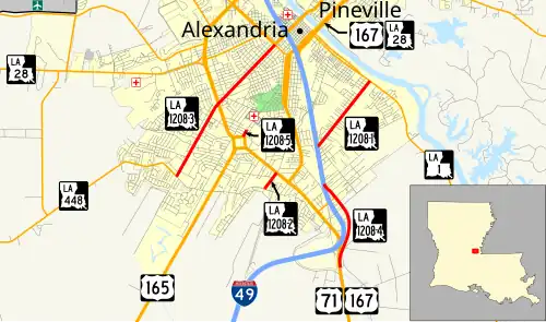 Louisiana Highway 1208 (LA 1208) is a collection of five state highways which serve Alexandria in Rapides Parish.