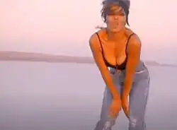 The black-and-white music video for the song was filmed at a dry lake bed outside Los Angeles, under the direction of American photographer Herb Ritts.[38][39] In her 2011 book True You, Jackson recalled that years prior to the video, Ritts called her one day and questioned her about her weight; she was "taken aback" and put off working with him, since at the time was feeling self-conscious about her body. After some time, however, she decided that she was being "overly sensitive", and that she wanted to work with Ritts after all.[40] Described by Ritts as a "departure from her elaborate dance production routines", it shows Jackson in a halter top, tight jeans, sporting a blonde upswept hairdo, looking "fresh, sensual, womanly and vulnerable as she reveals herself to the camera".[7][39][41] Jackson's co-stars in the visual are models Djimon Hounsou and Antonio Sabàto Jr.[7] The video uses an alternate mix of the song, which begins with Jackson singing the refrain a capella.[7] Throughout the visual, she embraces and dances with the scantily clad models.[42][7] "Love Will Ne ver Do (Without You)" can be found on the video compilations The Rhythm Nation Compilation (1990) and Design of a Decade: 1986–1996 (1995).[41][43] In 2020, Julien's Auctions auctioned the outfit worn by the singer for $25,000.[44]