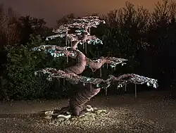 - To celebrate their meeting in Japan, Jonathan Montagu and Nathalie Daoust commissioned artist Clare Grotefeld to design and create a giant bonsai love lock tree for their wedding on 4 October 2014. The tree is located at Beaulieu Palace House, UK, where couples are invited to help the tree flourish by adding their own love locks.[47]