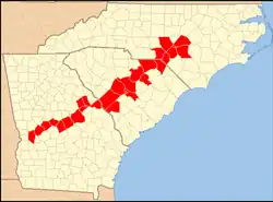The term "Low Country" originally referred to all of the states below the Fall Line, or the Sandhills, which run the width of the states from Aiken County to Chesterfield County. The Sandhills, or Carolina Sandhills, is a 15–60 km wide region within the Atlantic Coastal Plain province, along the inland margin of this province. The Carolina Sandhills are interpreted as eolian (wind-blown) sand sheets and dunes that were mobilized episodically approximately 75,000 to 6,000 years ago.[3] Most of the published luminescence ages from the sand are coincident with the last glaciation, a time when the southeastern United States had colder air temperatures and stronger winds. The area above the Sandhills is known as "Upstate" or "Upcountry". These areas are different in geology, geography, and culture.