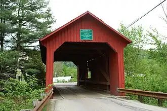 The Lower Cox Brook Covered Bridge is a wooden covered bridge that crosses Cox Brook in Northfield, Vermont on Cox Brook Road. Built in 1872, it is one of five surviving 19th-century covered bridges in the town, in the only place in Vermont where two historic bridges are visible from each other. It was listed on the National Register of Historic Places in 1974.[1]