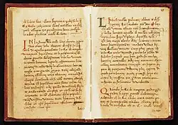 The Rebellamentu covers the years 1279–82 and treats John of Procida as a hero.[6] It is also the earliest chronicle to record that violence broke out after a Sicilian woman was raped by a French soldier, a story also recorded by Atanasiu di Iaci elsewhere.[7] It says that when the Sicilians complained to Charles of Anjou about their high taxes, he responded, "Vi farro spendiri munita di soli, como altra volta havitu spisu,"[8] threatening that he would re-issue leather money as had been done in the past. This probably indicates that the legend that William I issued leather money, otherwise first recorded by Tommaso Fazello in his De Rebus Siculis (1558), was current in the late thirteenth century.[9] The Rebellamentu also makes the Orsini Pope Nicholas III party to a conspiracy to dethrone Charles of Anjou.[10] The Florentine chronicler Giovanni Villani, who was biased against the Orsini because of the legation of Napoleone Orsini to Florence in 1306, supports the allegation.