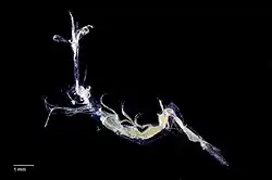 Luciferidae is a family of prawns. These prawns are small, characterised by bioluminescence and the loss or reduction of some appendages. They are predators of tiny planktonic crustaceans for which their third pereiopod is adapted to capture by having thick, curved spines covering the limb. Until recently, the family was thought to be monotypic, but a 2016 cladistic analysis recognized a second genus apart from Lucifer, named Belzebub.[1][2]