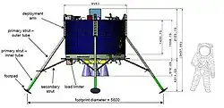 The Lunar Lander was a robotic mission intended to send a lander vehicle to the Moon, led by ESA's Human Spaceflight and Operations directorate. The primary objective of the Lunar Lander mission was to demonstrate Europe's ability to deliver payload safely and accurately to the Moon's surface. More specifically the mission would have demonstrated the technologies required to achieve a soft and precise landing while autonomously avoiding surface hazards that can endanger landing and surface mission safety. These technologies will be an asset for future human and robotic exploration missions.[4] However the project was put on hold at the 2012 ESA Ministerial Council.[5]