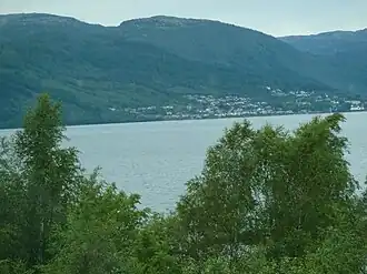 The 27.49-square-kilometre (10.61 sq mi) lake is about 25 kilometres (16 mi) long. It is the ninth-deepest lake in Norway and extends about 265 m (869 ft) below sea level and since it sits at an elevation of 49 m (161 ft), the maximum depth of the lake is 314 m (1,030 ft). This overdeepening, as well as its long and narrow shape, are characteristics of glacially-formed lakes.[2]