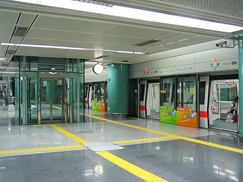 Luohu station (simplified Chinese: 罗湖站; traditional Chinese: 羅湖站; pinyin: Luóhú Zhàn; Cantonese Jyutping: Lo4 Wu4 Zaam6) is an underground terminus of Line 1 of the Shenzhen Metro in Shenzhen, Guangdong Province, China. It is located beneath the East Plaza of Shenzhen railway station in Shenzhen's Luohu District. It is the second-busiest station in the network in terms of system entries and exits, with approximately 56,400 passengers a day.[2]