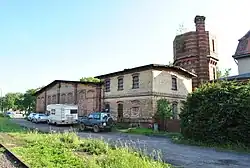 The station includes a former four-stall engine house with technical facilities and its own water tower. It had one inspection channel and a turntable.[19] The old engine house is located at the northern exit from the station, west of the main tracks, now housing a building materials wholesale business.[7][22]