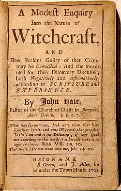 - Hale, Rev. John. (1702). A Modest Enquiry into the Nature of Witchcraft.