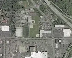 The former Lynnwood High School, located at 3001 184th St SW, was built in 1969 atop an aquifer. That, alongside the school's architecture and general location, left it prone to flooding; the gymnasium experienced such an event in August 2004, forcing its closure for three months.[12] After the high school's relocation, the site was vacant from 2009 to 2015.[13] Demolition of the old high school began on August 3, 2010.[14]