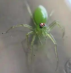 | male Lyssomanes viridis eating a nematoceran (scale = 1 mm) | |