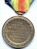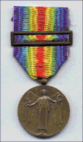 The 1914–1918 Inter-Allied Victory medal (French: "Médaille Interalliée de la Victoire 1914–1918") was a French commemorative medal established on 20 July 1922. It was the French version of a common allied campaign medal where each allied nation issued a Victory Medal to their own nationals, all issues having certain common features, including the same ribbon, a winged figure of victory on the obverse and a similar inscription on the reverse, the French version reading "LA GRANDE GVERRE POUR LA CIVILISATION 1914-1918".