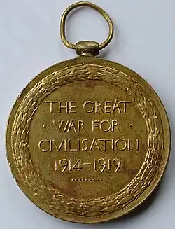 5. ^ Awarded not only to British combatants but as well to those from the dominions of Canada, Australia, New Zealand and those from the Empire of India.
