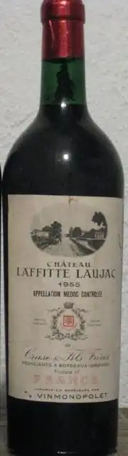 Médoc (French pronunciation: [medɔk] ⓘ) is an AOC for wine in the Bordeaux wine region of southwestern France, on the Left Bank of the Gironde estuary that covers the northern section of the viticultural strip along the Médoc peninsula. The zone is sometimes called Bas-Médoc (English: Low-Médoc), though this term is not permitted on any label.[2] With few exceptions there is produced only red wine, and no white wine has the right to be called Médoc.[3]