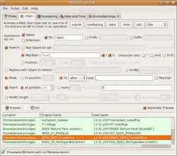 Métamorphose or Métamorphose file -n- folder renamer is an open source batch renamer. The focus is on legibility, usability, and power - there are no codes or formats to remember and all controls are shown, yet rather complicated operations can be done. Because it is written in wxPython, it is very portable, and can run on all major operating systems.