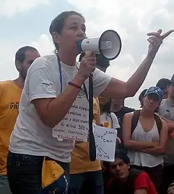 ![]() Kräuter giving a lecture about tear gas during a sit in, in Caracas, 2017 | |