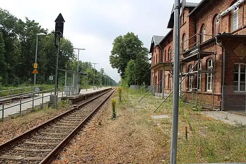 Müllrose station is a railway station in the municipality of Müllrose, located in the Oder-Spree district in Brandenburg, Germany.