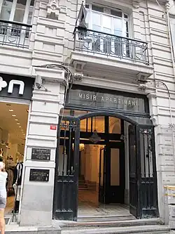 The Mısır Apartment or Mısır Apartmanı (Turkish for "Egypt Apartment") is a famed historical building on the renowned İstiklal Avenue in the Beyoğlu district of Istanbul, Turkey. Over the years, the building has hosted numerous notable persons and businesses, including Mehmet Akif Ersoy, Lazzaro Franko, Su Baykal, and Hüsamettin Cindoruk.[1][2] It is considered one of the notable examples of Art Nouveau style architecture in Istanbul and was a popular spot for the high society of the city.[3][4]