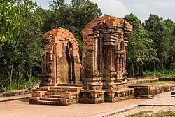 Mỹ Sơn (Vietnamese pronunciation: [mǐˀ səːn]) is a cluster of abandoned and partially ruined Shaiva Hindu temples in central Vietnam, constructed between the 4th and the 13th century by the Kings of Champa, an Indianized kingdom of the Cham people.[1][2] The temples are dedicated to the veneration of God in accordance with Shaivism, wherein God is named Shiva, or The Auspicious One. In this particular complex, he is venerated under various local names, the most important of which is Bhadreshvara.