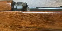 The M1 carbine entered service with a simple flip sight, which had two settings: 150 and 300 yd (140 and 270 m).[28] However, field reports indicated that this sight was inadequate, and in 1944, it was replaced by a sliding ramp-type adjustable sight with four settings: 100 yd (91 m), 200 yd (180 m), 250 yd (230 m), and 300 yd (270 m). This new rear sight was also adjustable for windage.[9]