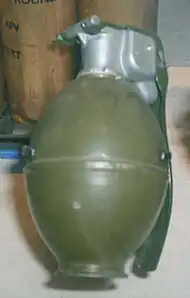 The M26 is a fragmentation hand grenade developed by the United States military. It entered service in 1952 and was first used in combat during the Korean War, replacing the Mk 2 of World War II. The M26 series was the primary fragmentation grenade used by American forces in the Vietnam War. It was replaced by the M33 series grenade. Its distinct lemon shape led it to being nicknamed the "lemon grenade" (compare the Russian F1 and American Mk 2 "pineapple" grenades).